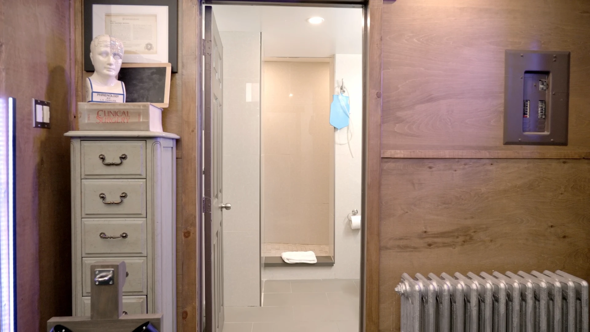 В основе пространства — большая игровая зона и изящная винтовая лестница, ведущая на антресоль с открытой спальней, откуда через балкон просматривается весь зал, позволяя проводить игры одновременно на обоих уровнях. На первом этаже расположены кухня открытой планировки и полноценная ванная комната с просторным душем.